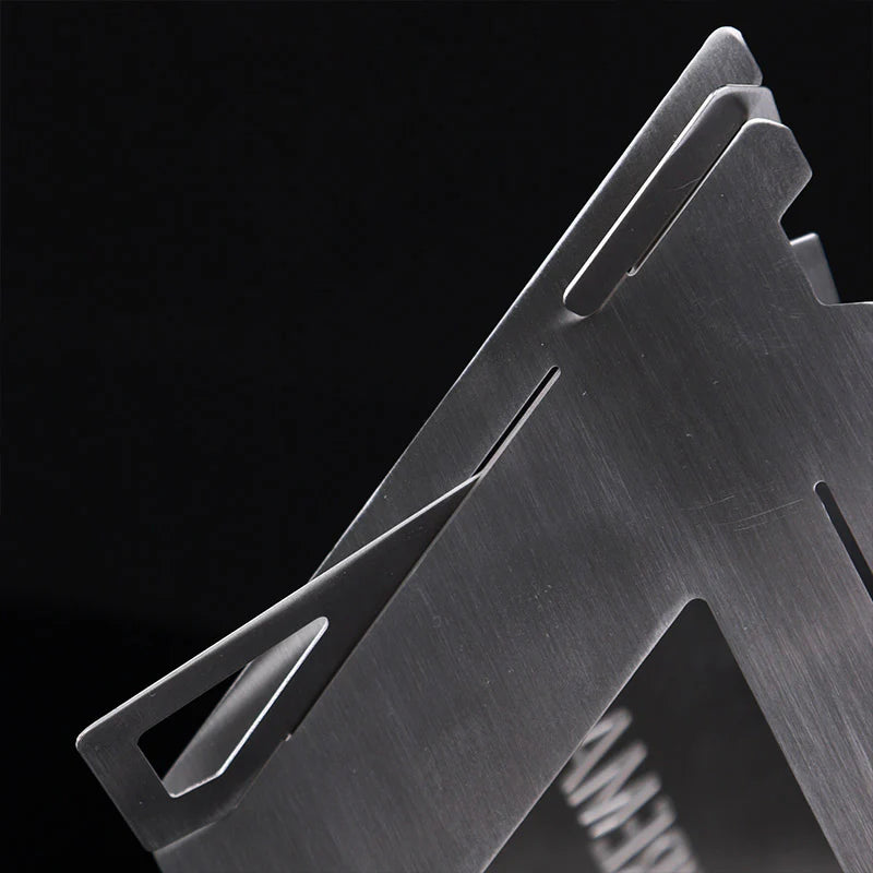 Der Maverick Camping-Holzkocher ist aus rostfreiem Stahl gefertigt, er ist dick und gut verarbeitet, um eine bessere Haltbarkeit zu gewährleisten, so dass er jahrelang benutzt werden kann, ohne scharfe Kanten.